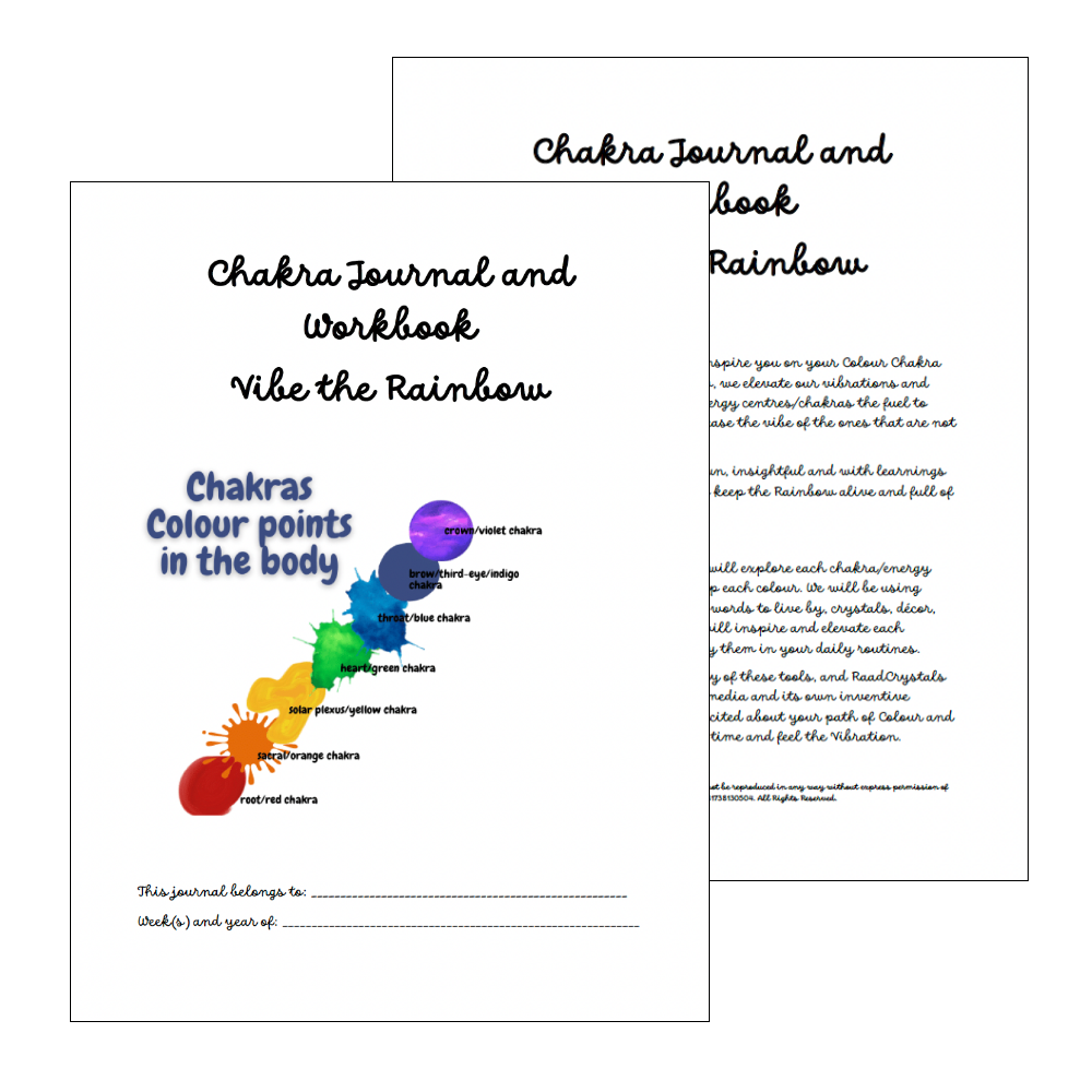 Welcome! This journal has the intention to inspire you on your Colour Chakra journey. When we 'Vibe the Rainbow', we elevate our vibrations and frequencies, therefore giving our Energy Centres/Chakras the fuel to work at optimal levels and to increase the vibe of the ones that are not at full capacity.