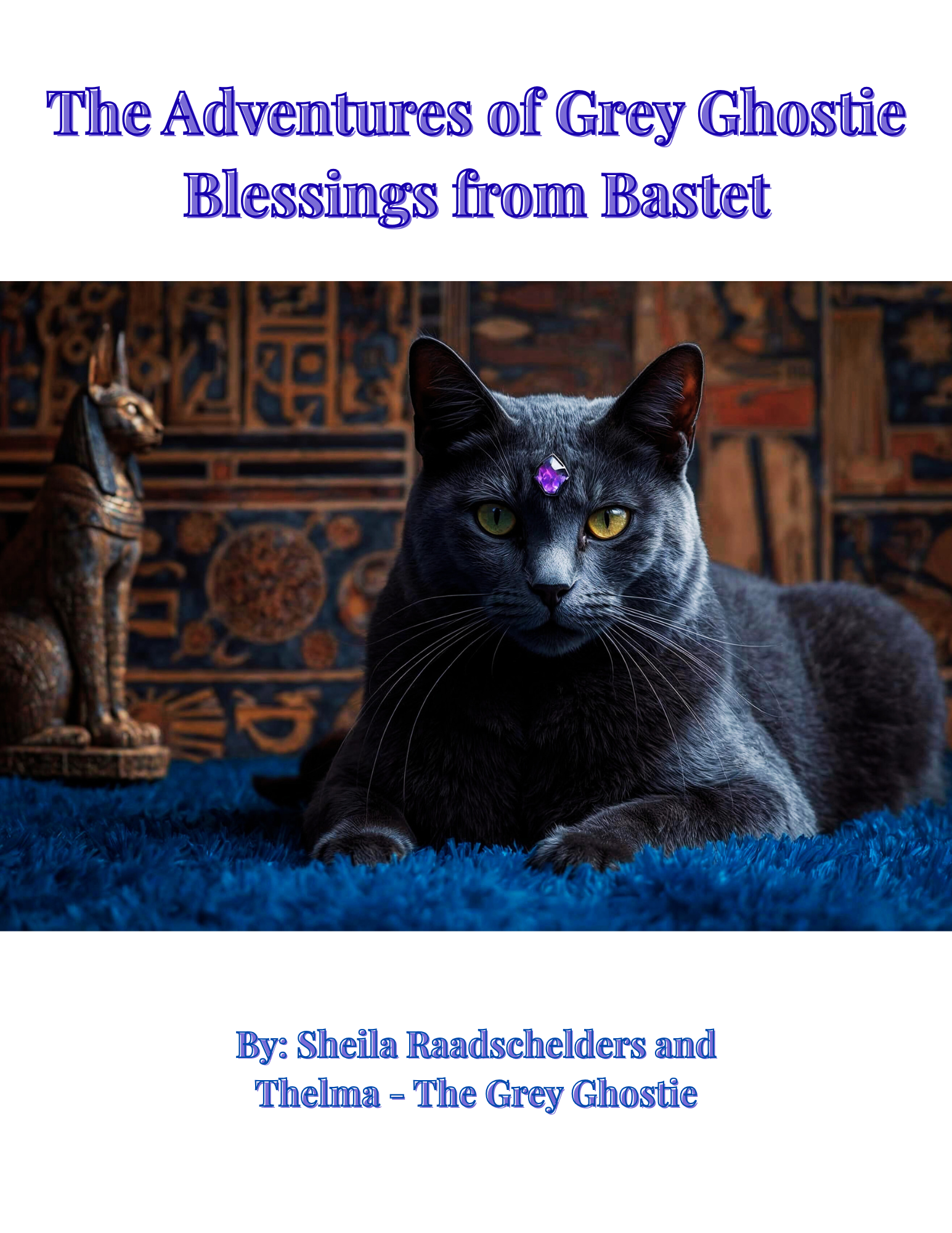 The Adventures of Grey Ghostie: Blessings from Bastet is a metaphysical fiction written by Sheila Raadschelders and her Galactic Cat Thelma ā Sheila is a holistic practitioner, aura energy reader, cat channeler and medium who brings her lifelong connection to spirit into every page. BlendingĀ ancient Egyptian mythology, animal wisdom, and energy healing, this story offers comfort, insight, and a reminder that love never stops ā it simply changes form.